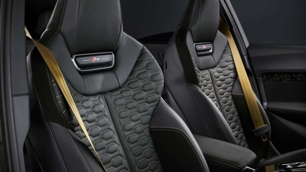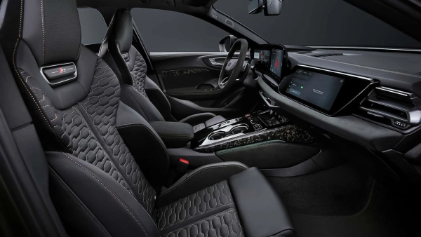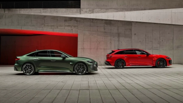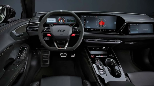 Моделі RS приблизно на 9 сантиметрів ширші за звичайний A5 як спереду, так і ззаду, де опціонально встановлюються керамічні гальма за 20- або 21-дюймовими колесами. Більш темні матричні світлодіодні фари і чорні “чотири кільця” підсилюють візуальну привабливість, доповнену мотивом шахового прапора, що повторюється в OLED-задніх ліхтарях. Масивні передні повітрозабірники та задні спойлери для обох типів кузова не викликають сумнівів, що це топова версія A5, зауважує видання.