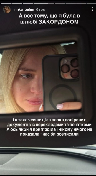 Переможниця романтичного шоу “Холостяк-13”, волонтерка та блогер Інна Бєлєнь повідомила, що їй та її судженому Івану було відмовлено у реєстрації шлюбу в органах реєстрації актів цивільного стану. Про це інформує УНН з посиланням на Instagram-stories медійної особистості.