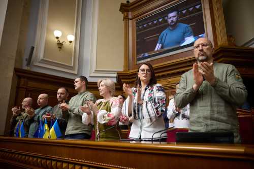 Володимир Зеленський виступив у Верховній Раді у День Конституції України. Під час урочистого засідання, на якому були присутні члени Кабінету міністрів, головнокомандувач ЗСУ та іноземні посли, президент запропонував прийняти доктрину України після перемоги.