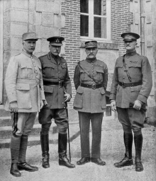 Зліва направо: генерал Філіп Петен, британський фельдмаршал сер Дуглас Хейг, генерал Фердинанд Фош і генерал Джон Джозеф Першинг, 1918. Фото wikipedia