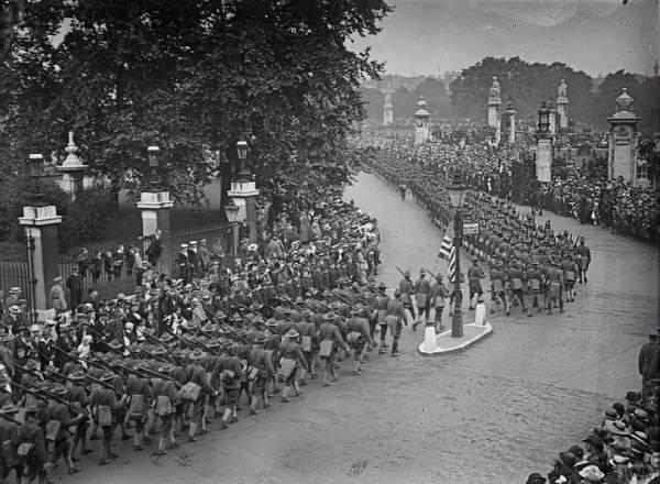 Колона американських військ проходить повз Букінгемський палац у Лондоні, 1917 рік. Фото wikipediaАмерика долучається до війни або «Лафайєте, ми тут!»