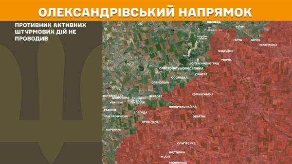 На Олександрівському напрямку супротивник активних штурмових дій не проводив.
