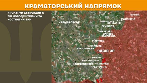 На Краматорському напрямку росіяни наступали в напрямку Новодмитрівки та Костянтинівки.